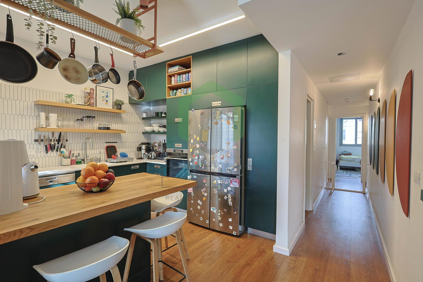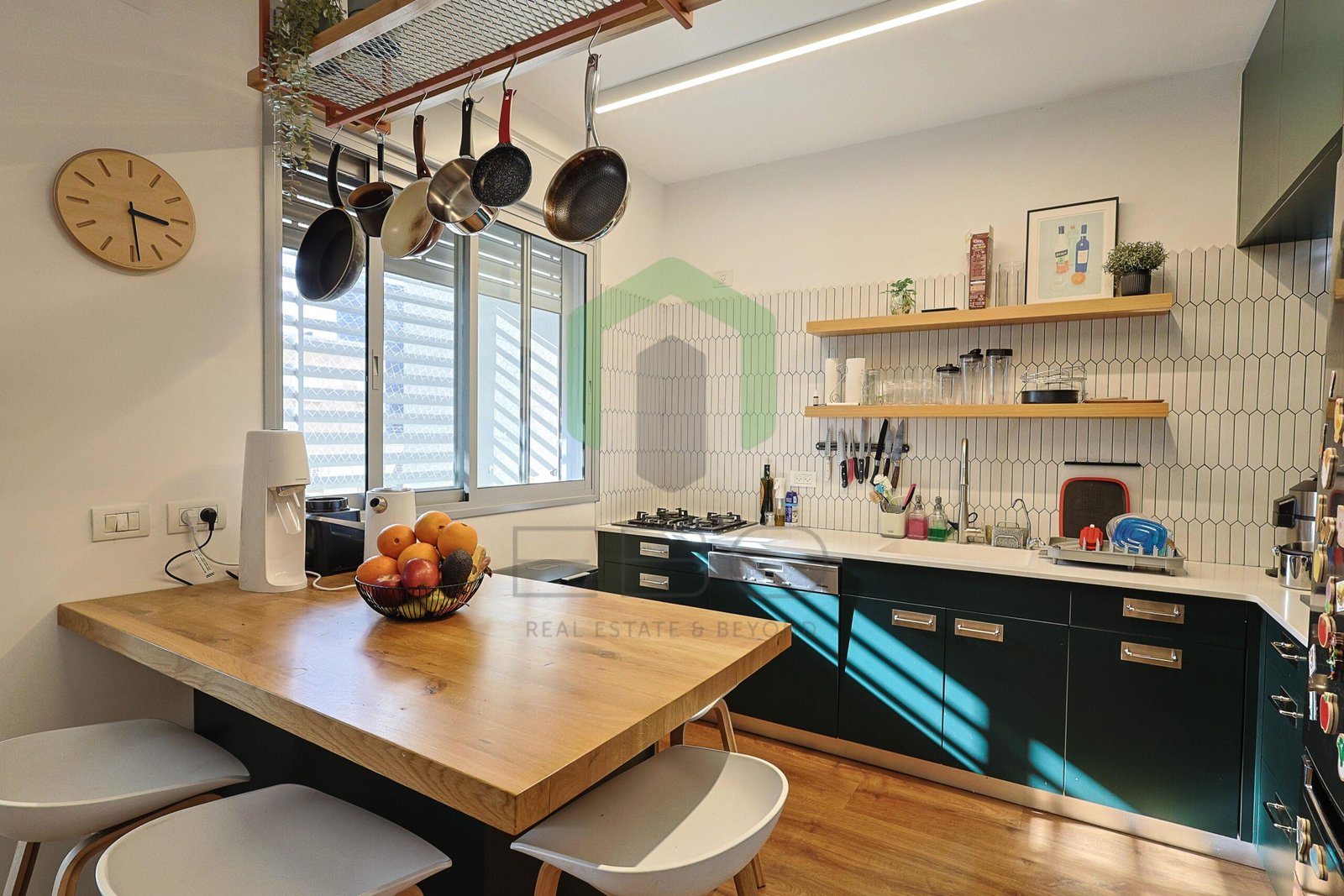 בלב שכונת בורוכוב ברחוב חד סטרי ושקט, בבניין חדש – למכירה דירת ארבעת חדרים משודרגת ומעוצב אדריכלית, 103 מ"ר + 14 מ"ר מרפסת שמש.