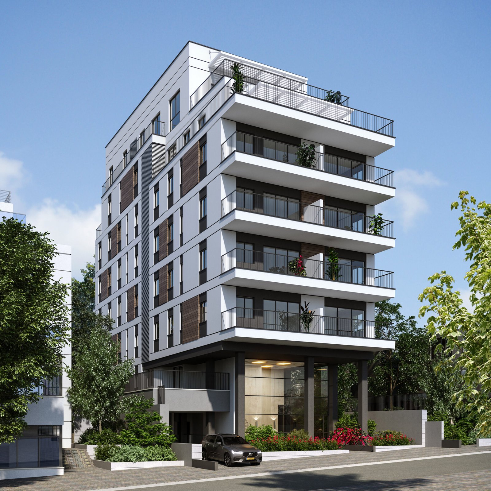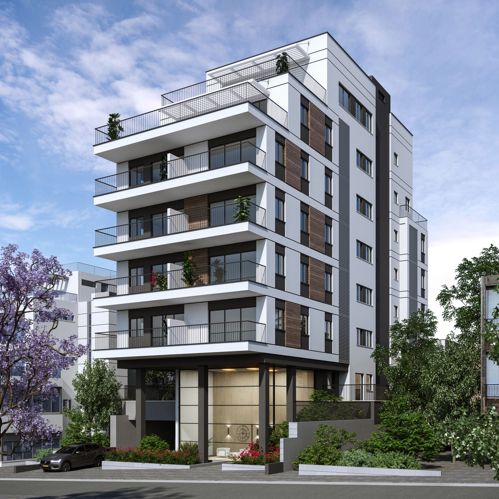 A high-standard residential project, located in the heart of the Borochov neighborhood in Givatayim, on the one-way and quiet KKL street, which spans the neighborhood. The location is close to the “Friendly center”, shops, cafes and educational institutions and within walking distance of public transportation.