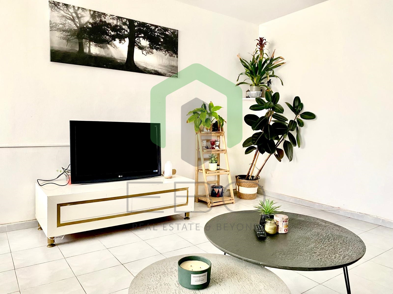 - Fully furnished – double bed, large 3-door wardrobe, two coffee tables, sideboard, dining area with 4 chairs, refrigerator, microwave, toaster oven